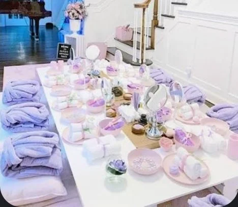 We transform your living room into a high-end salon. Includes a Mini-Mani Station, a Glam Bar for hair braiding and glitter styles, and a Pink Lemonade service in elegant glassware. The "Take-Home Magic" goodie bags ensure the experience lasts even after we leave.